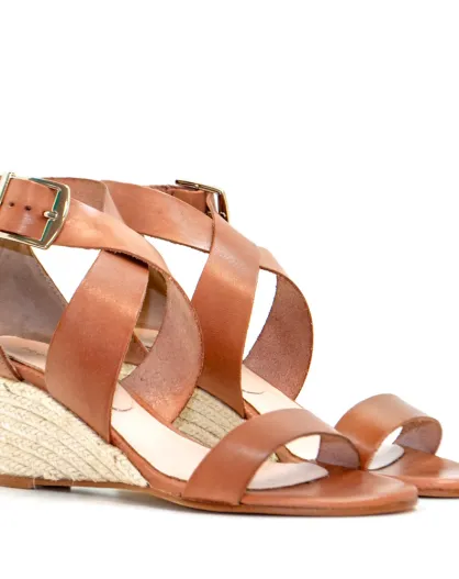 Sandales compensées en cuir 14003 camel - Talon : 7 cm
