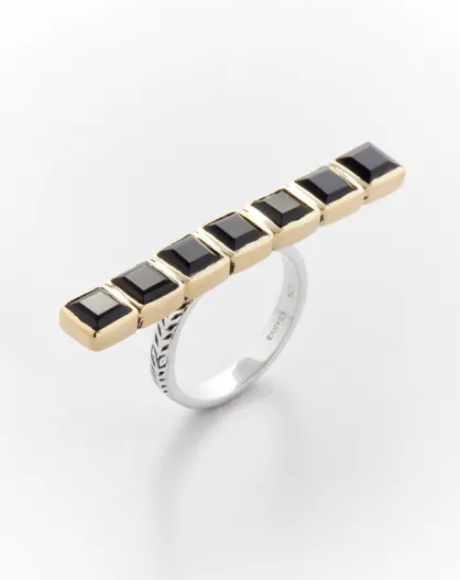 Bague en argent et laiton Filipa onyx noir