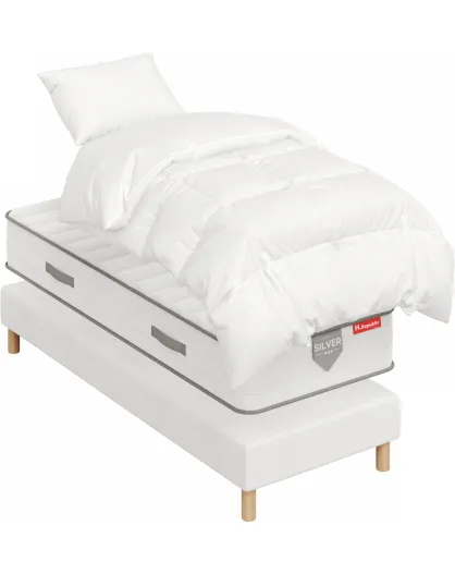 Pack Matelas HSILVER 25cm 80x200cm + 1 sommier 80x200cm + 1 oreillers 60x40cm + 1 duvet 140x200cm blanc