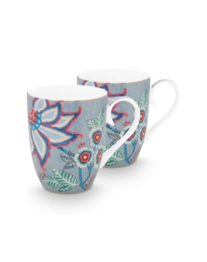 Coffret 2 Grand mug Flower Festival bleu clair - 350ml