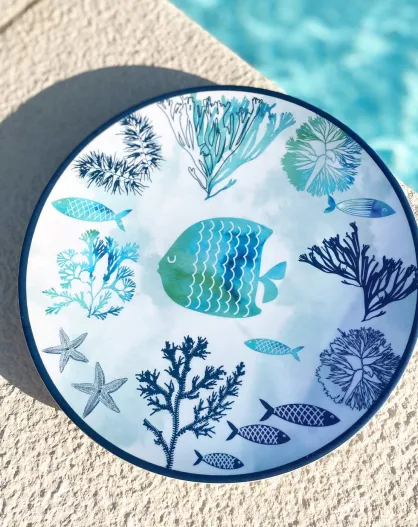 Grand saladier caraibes bleu et blanc - 31 cm x 9.5 cm