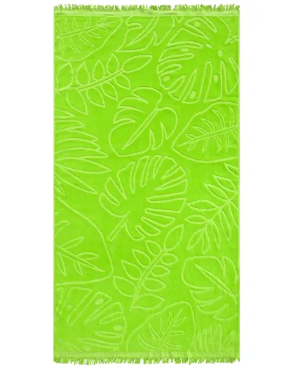 Serviette de plage éponge velours Jacquard ciselée Klang Vert - 90x170 cm
