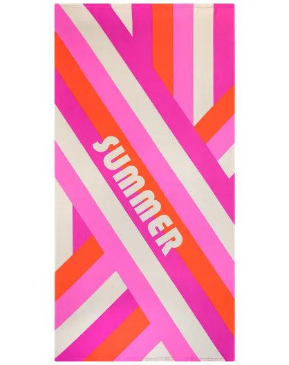 Serviette de plage microfibre Rayure-Pop Rose - 75x150 cm