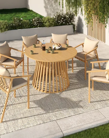Ensemble repas Hortensia 6 places métal effet bois beige