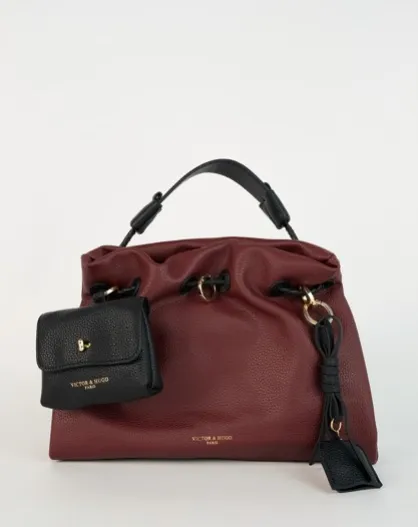 Sac à main en cuir Yera bordeaux / noir - 26 x21 x13cm