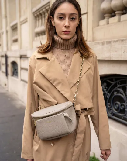 Sac banane en cuir Aly taupe - 21 x13 cm