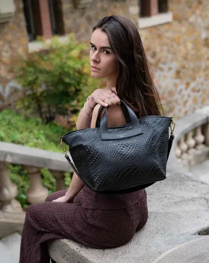 Sac à main en cuir Monaco noir - 43 x26 x14,5 cm