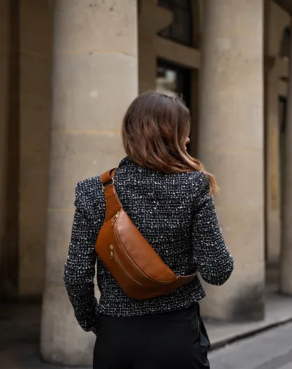 Sac banane en cuir Isla camel - 40x15x3cm