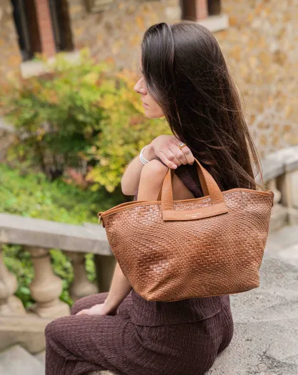 Sac à main en cuir Monaco camel - 43 x26 x14,5 cm
