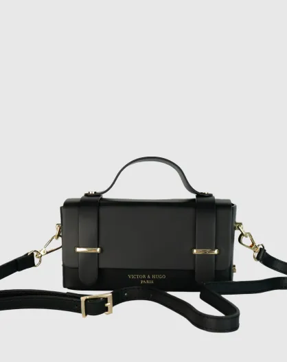 Sac porté épaule en cuir Boho noir - 19x10x5 cm