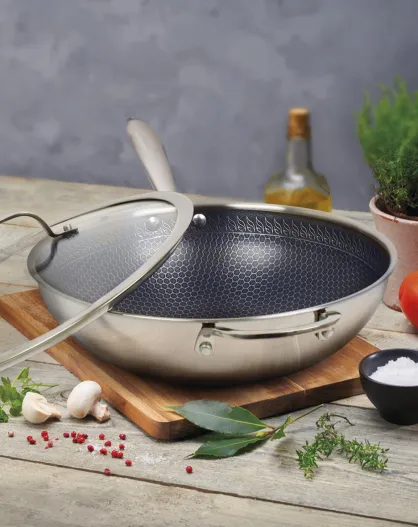 Wok Multinox Pro trois couches structure nid d’abeille - 30 cm