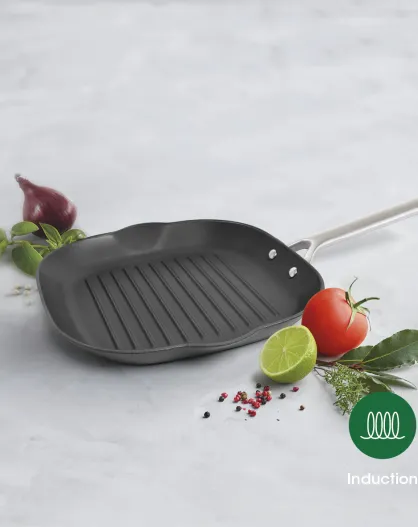 Poêle grill en fonte d'acier noir avec revêtement antiadhésif et poignée en acier inoxydable 28 cm