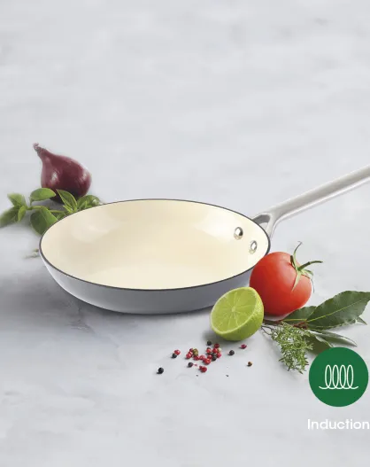 Poêle en fonte émaillée avec poignée en acier inoxydable 20 cm