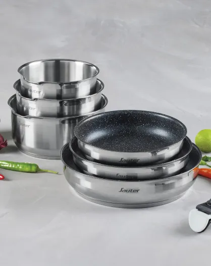 Batterie de cuisine en acier inoxydable 7 pièces argenté/noir - 20/24/26 cm + 16/18/20 cm
