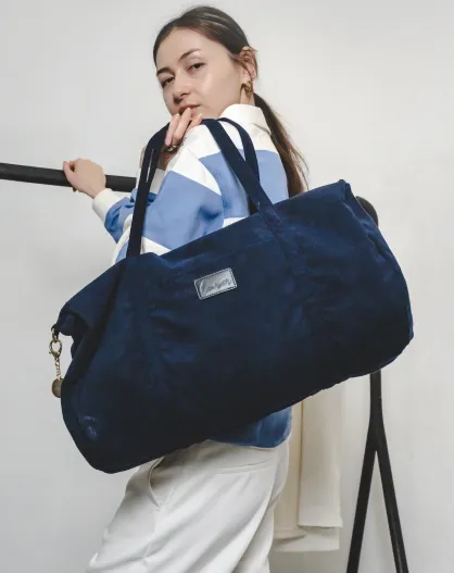 Sac porté épaule en velour Halo bleu marine - 41x22x16 cm
