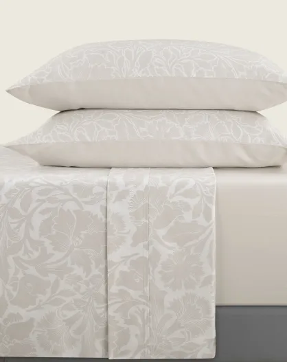 Ensemble de draps satin de coton Arabesque taupe + 180x200x30 cm + 2x(50x70 cm)