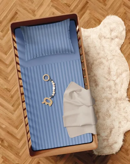 Housse de couette + taie d'oreiller bébé satin de coton rayure tissé Jacquard bleu - 80x120 cm + 35x45 cm