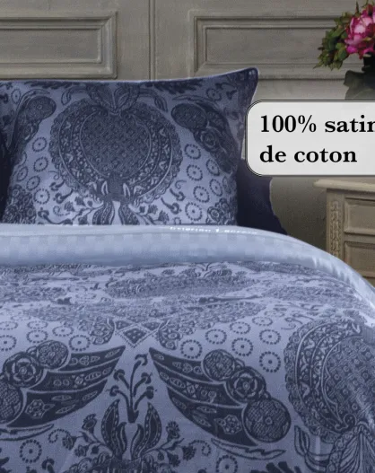 Drap plat satin de coton uni bleu foncé