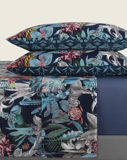 Ensemble de draps satin de coton Zanzibar bleu - 240 x 300 cm