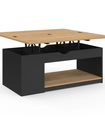 Table basse Elina relevable bois et noire - 100x50x42,5 cm