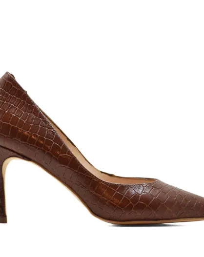 Escarpins Camile en cuir effet crocodile marron - Talon : 8cm
