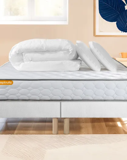 Pack lit complet Memo blanc - matelas + 2 sommiers + 2 oreillers + couette - 2x100x200 cm