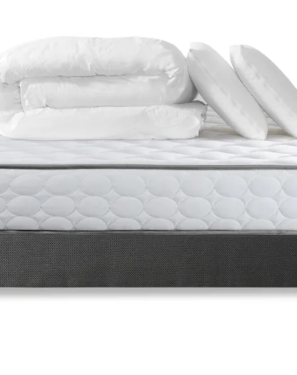 Pack lit complet Memo gris - matelas + sommier + 2 oreillers + couette - 140x190 cm