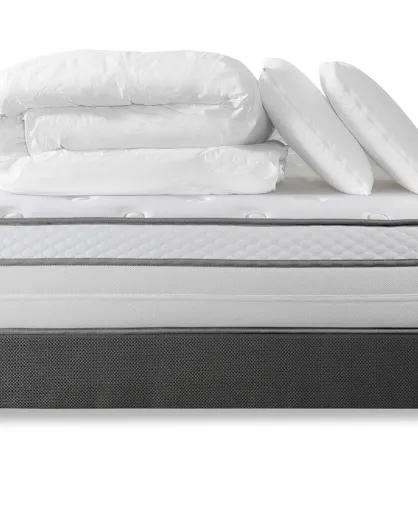 Pack lit complet Memo Luxe gris - matelas + sommier + 2 oreillers + couette - 180x200 cm