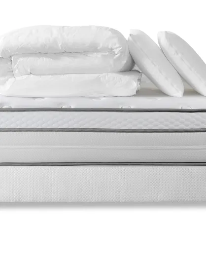 Pack lit complet Memo Luxe blanc - matelas + sommier + 2 oreillers + couette - 140x200 cm