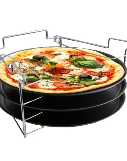 3 Plaques à pizza avec support noir - 39x34.5x2.5 cm