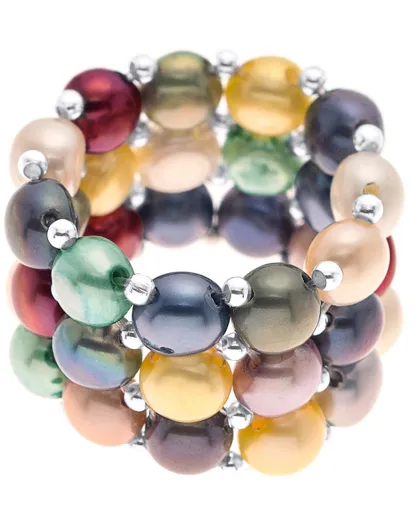 Bague élastique 3 rangs Perles d'Eau Douce multicolores