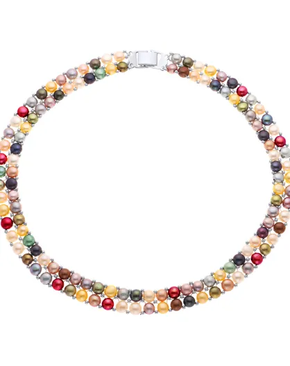 Collier Or Blanc Rang Perles d'Eau Douce multicolores